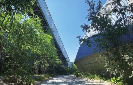 花園般的廠區(qū)內(nèi),綠樹成蔭,與高爐相映成趣;漫步其中,與拖家?guī)Э诘耐翐苁?、山雞偶遇,于是駐足,觀之賞之。梨樹上結(jié)滿果實(shí),隨手摘下品嘗,十分解渴。