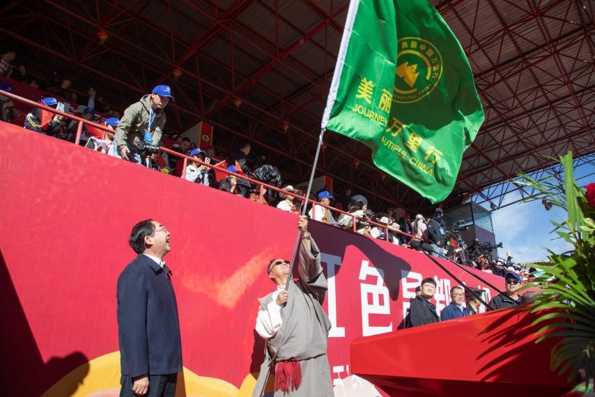 9月15日上午,中國風(fēng)景名勝區(qū)協(xié)會會長、美麗中國萬里行活動組委會主任張永利向昌都市委副書記、市長羅慶伍授予“美麗中國萬里行”旗幟。活動由昌都市委副書記、常務(wù)副市長李樹國主持。